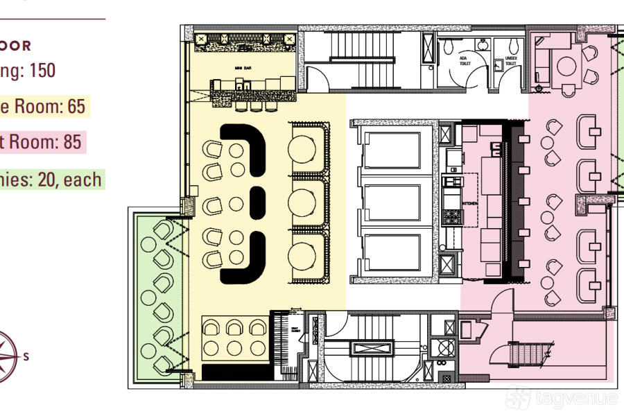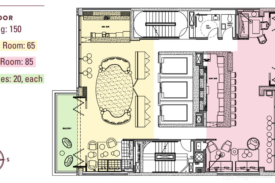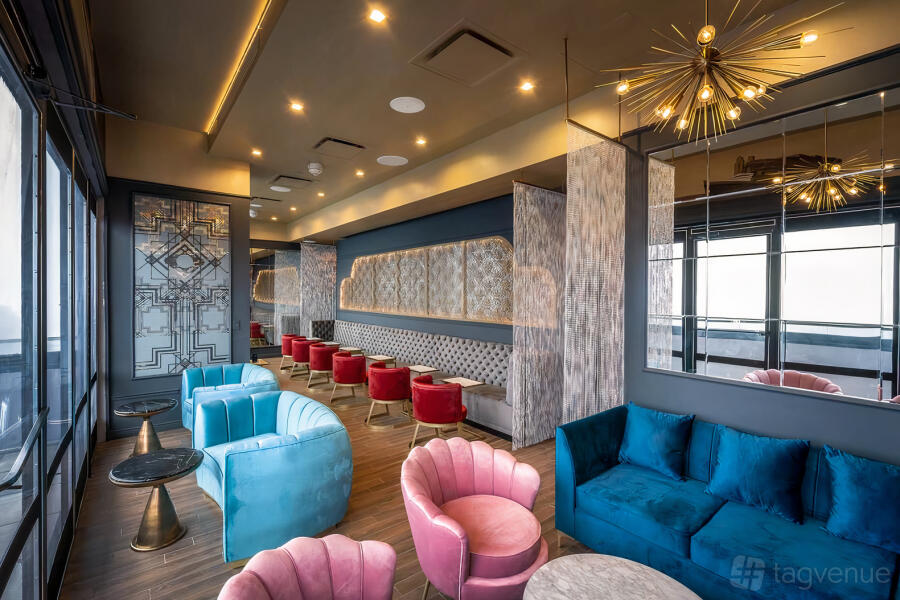 A private bar for up to 150 of your guests ensures your party will be well taken care of, and two open balconies allows for almost a 360 breathtaking view of the city.