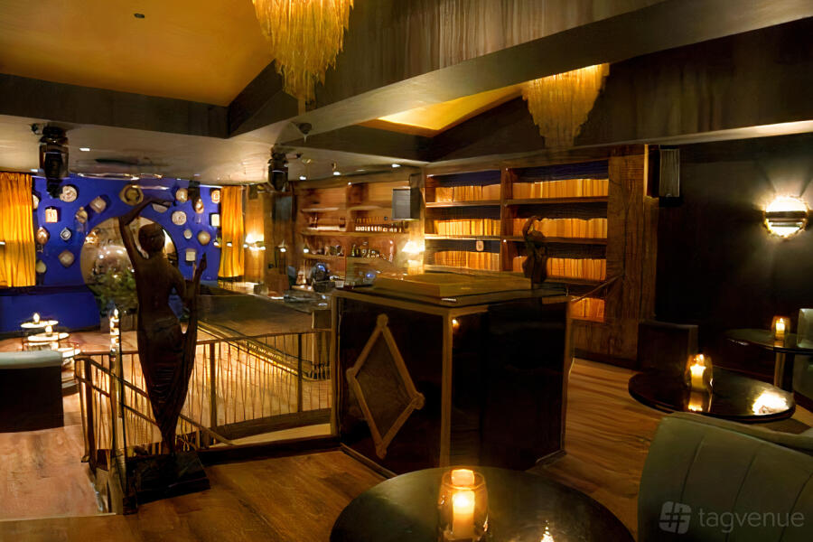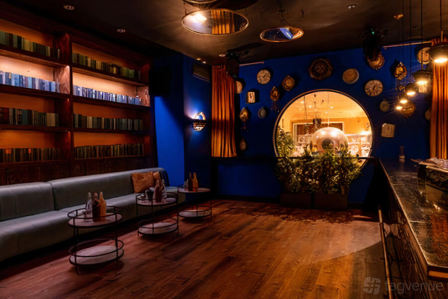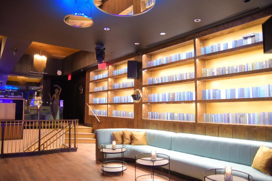 The second floor library offers a cozy but fun vibe with its own bar. and secret VIP room.