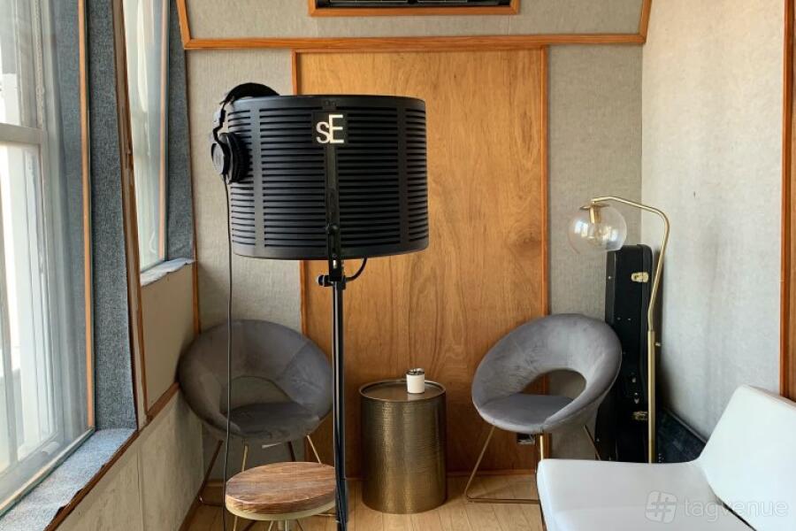 A beautiful room with a view of the New York skyline will make your podcast take place in amazing style. Opportunity to conduct discussions in groups of 5 people. Thanks to the possibility of various combinations of seats, it is also possible to conduct night talk shows here.