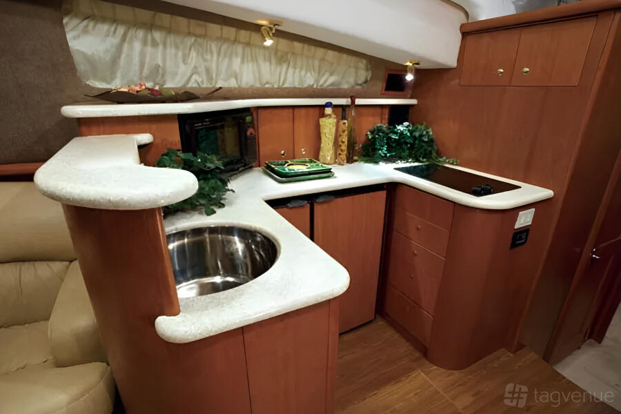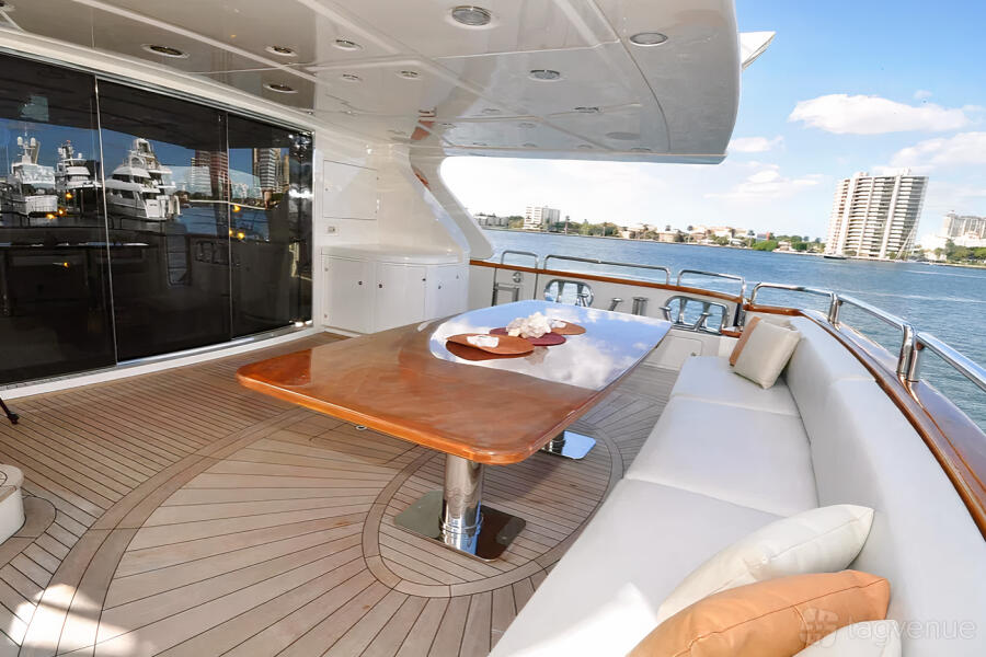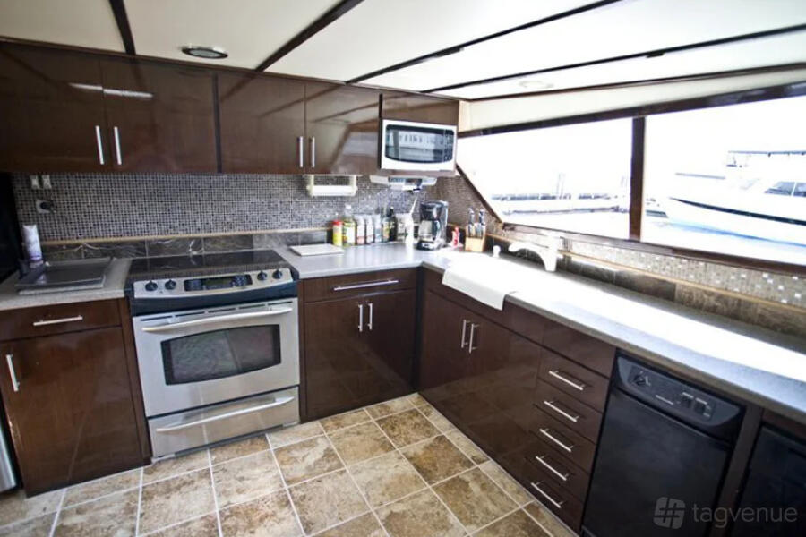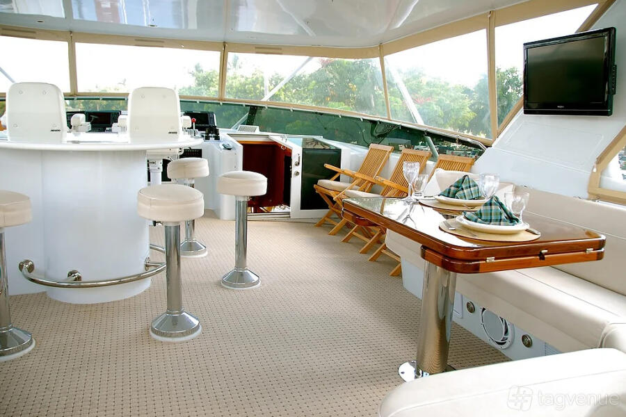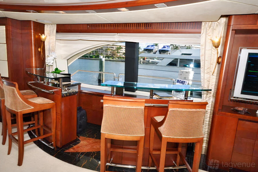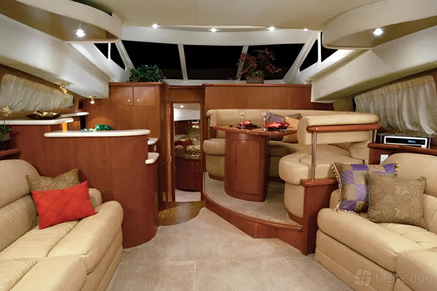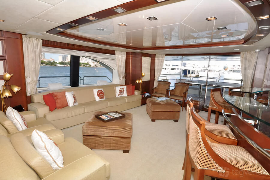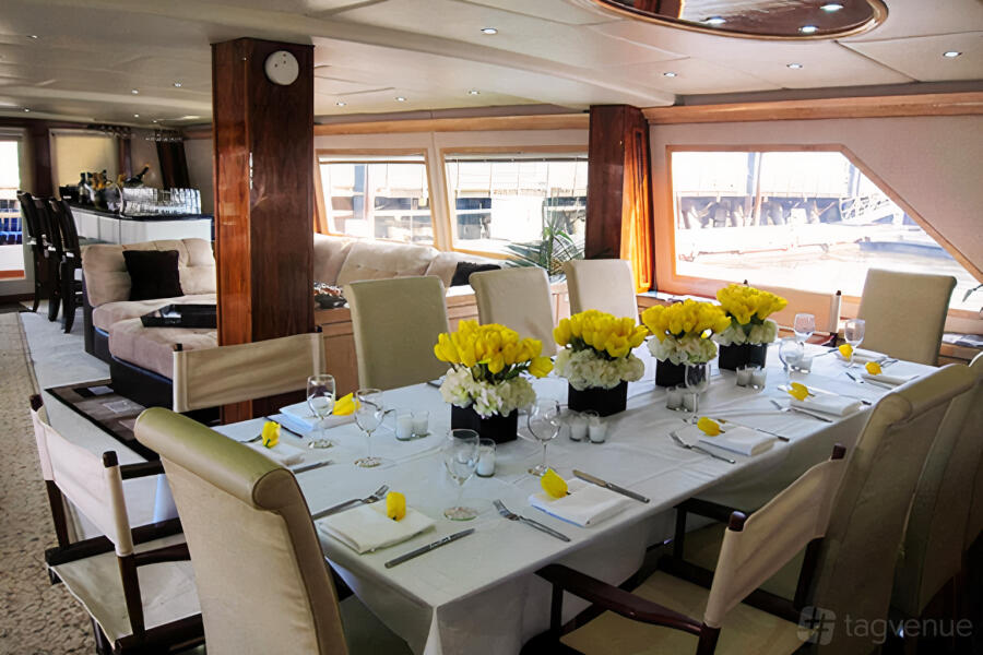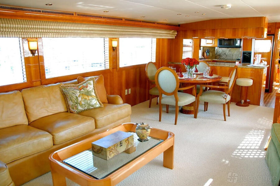 The Juliette features a large open salon that has a plush seating throughout, dining table, full-service bar, and a fully equipped galley for enjoyable meals.