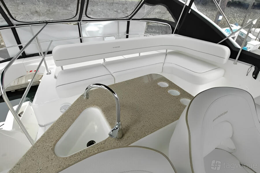 You can also celebrate on the open top deck and soak up the sun as you cruise the open waters. Lastly, the Juliette has a private stateroom for her guests to spend the night on-board. With plenty of space for all of her guests, the Juliette is perfect for parties, celebrations, corporate meetings, weddings and more.