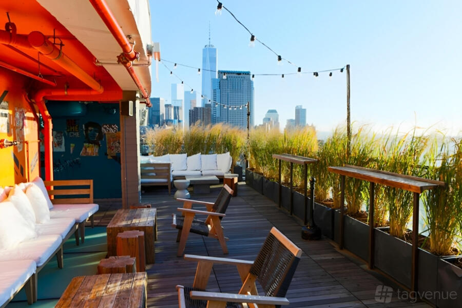 Hotel Hugo SoHo offers a stylish collection of event venues in the heart of Lower Manhattan, perfect for social gatherings, corporate meetings, and private celebrations. Located on the lobby level, Felix Roasting Co. serves artisanal coffee and features an outdoor patio, making it ideal for intimate gatherings or networking events. The hotel is also home to two stunning rooftop bars: Bar Hugo, with its glass-enclosed lounge, and Azul Rooftop, with its vibrant open-air setting—each accommodating up to 120 guests while showcasing breathtaking Hudson River views and sweeping city skyline vistas. On the lower level, a dedicated conference room provides 500 square feet of flexible space for smaller meetings of up to 20 guests. Together, these versatile spaces blend sophistication, style, and unparalleled views for unforgettable occasions.