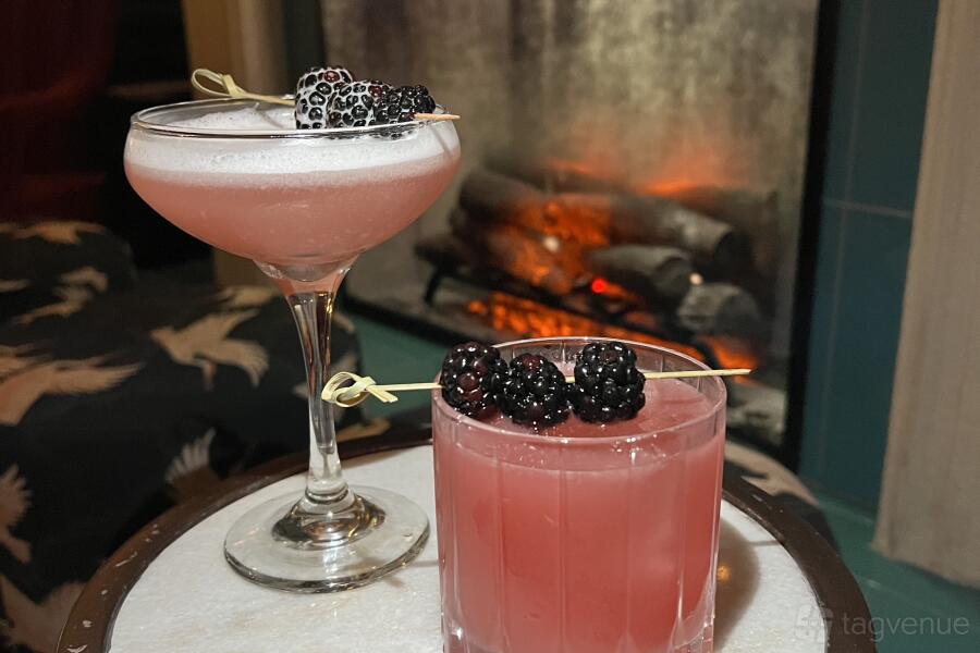 Our dining room is designed to cater to your comfort and style. With high-top tables, lounge-style tables, red leather banquettes, velvet chairs, and floral stools, you'll find the perfect spot to enjoy our delectable cuisine. For those seeking a more relaxed atmosphere, our mezzanine section offers cozy sofas and armchairs beside a warm fireplace, creating the ideal setting to unwind after a long day at work.