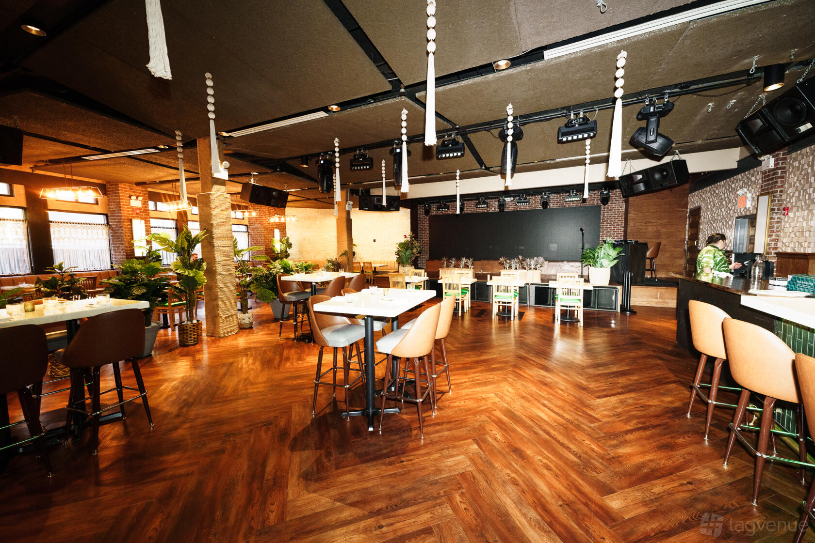 Welcome to Palma Verde, located on the 4th floor at 1604 Broadway in New York City. This venue blends modern architectural features with lush, tropical decor, creating an inviting oasis in the urban landscape.