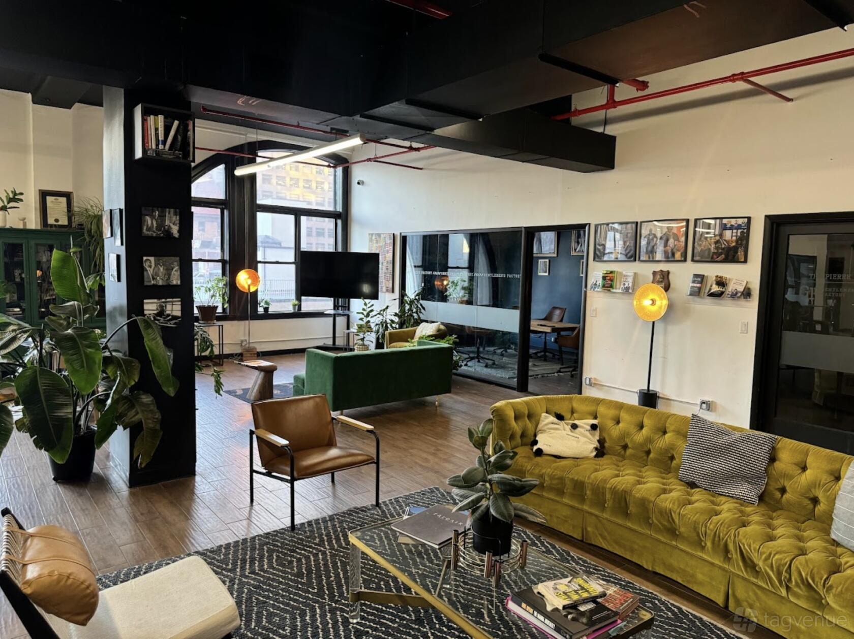 The Gentlemen's Factory in New York is an exquisitely decorated event space that exudes sophistication and modern elegance. With a bright, open floor plan, this versatile loft features three spacious glass meeting rooms, each designed to cater to different needs. The Pierre serves as a dedicated podcast room, The Gomez is a sleek conference room, and The Dorency is a well-appointed classroom.