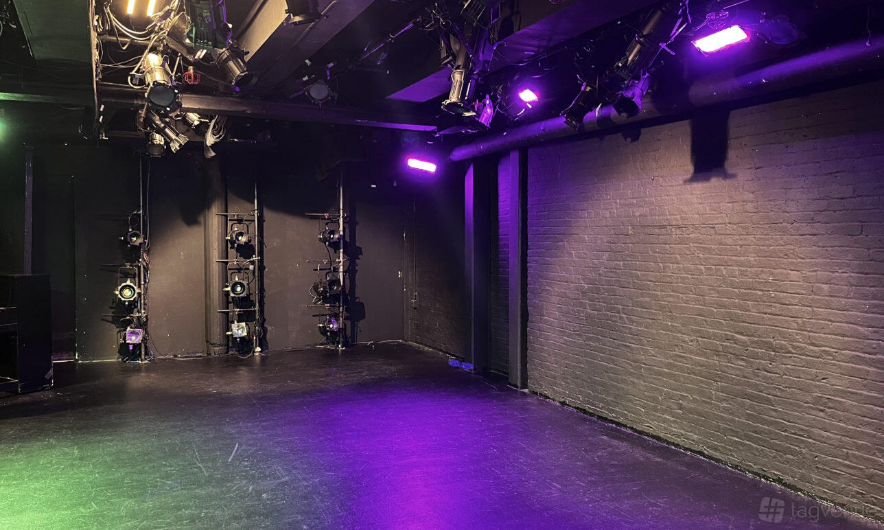 Our Mainstage Theatre is a flexible black box, perfect for your next event, party, meeting, or training. The space has a sprung wood floor which measures 46’ x 46’, seats 99-150 guests, and includes a complete lighting package with 92 dimmers and a complete sound system. Suitable for theatre, music, dance, performance, multi-media installations, readings, auditions, meetings, symposiums, presentations, conferences, parties, or classes.