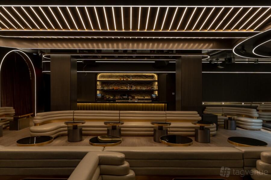 Accommodating up to 300 guests, it's an ideal space for exclusive events like private parties, corporate gatherings, or VIP receptions. The striking chandelier and sleek decor make it a captivating backdrop for high-profile occasions.