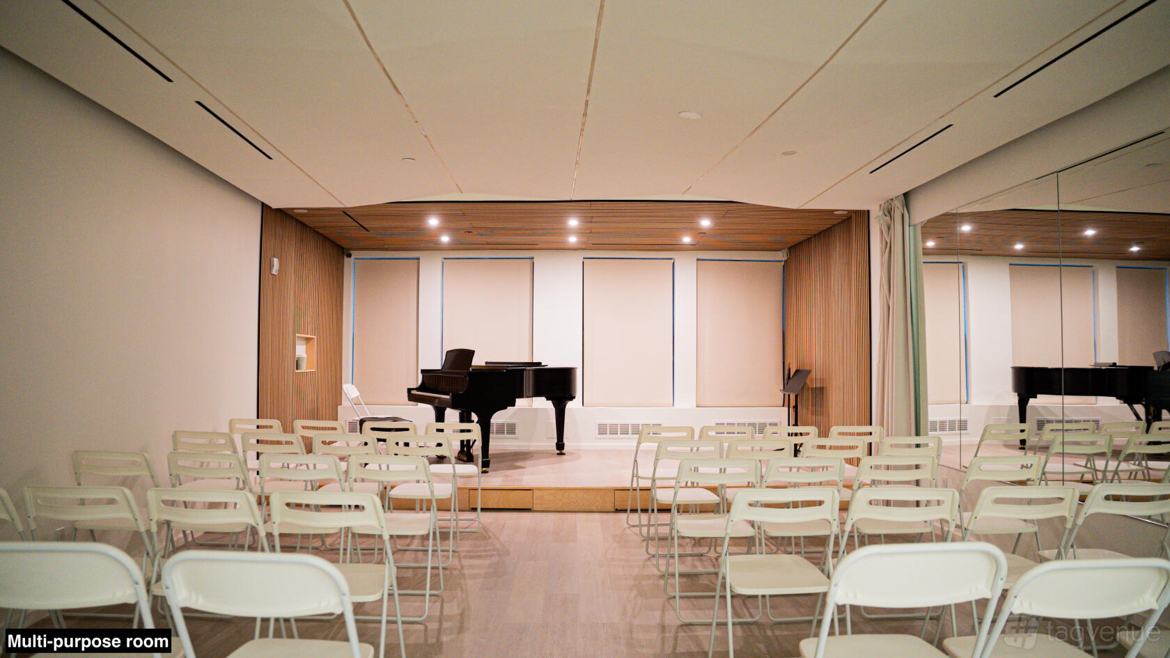 Bright, open, and adaptable, our Multipurpose Room is perfect for workshops, rehearsals, meetings, small performances, and creative gatherings. The space features WiFi, a TV/projector, Bluetooth speakers, blackout curtains, a large mirror (with optional curtain cover), and foldable furniture to suit your setup.