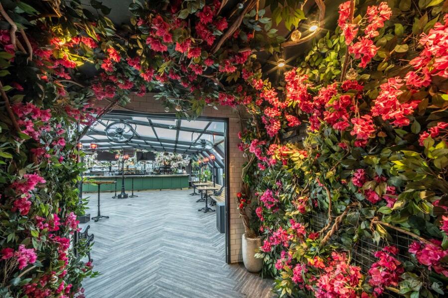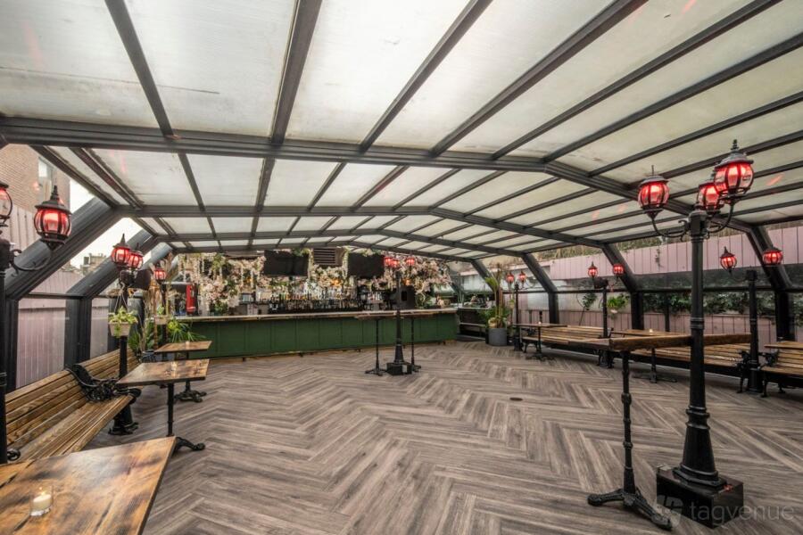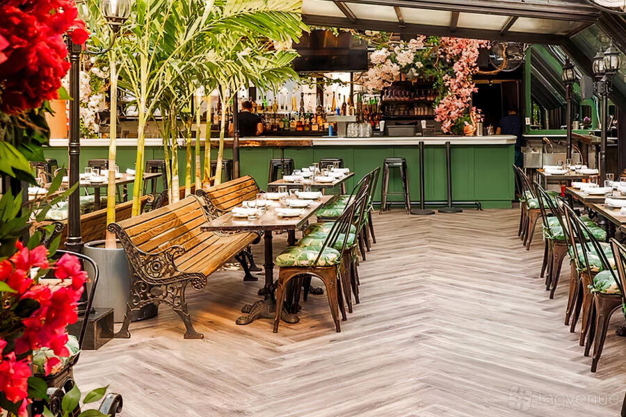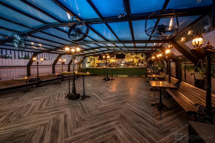 With a retractable glass roof, lush greenery, and sophisticated decor, the Rooftop offers year-round versatility. A full bar, DJ booth, premium sound system, and TV screens enhance the experience, making it an ideal choice for stylish social gatherings.