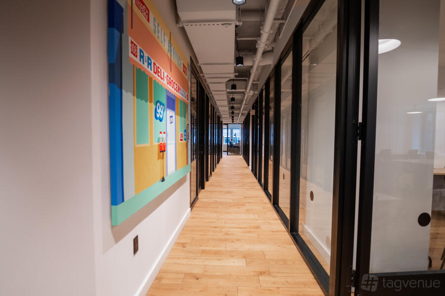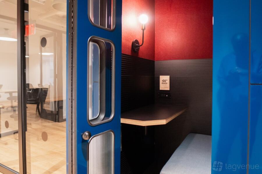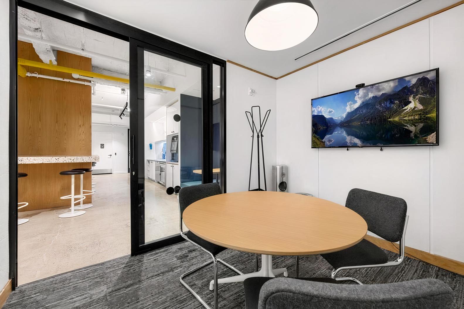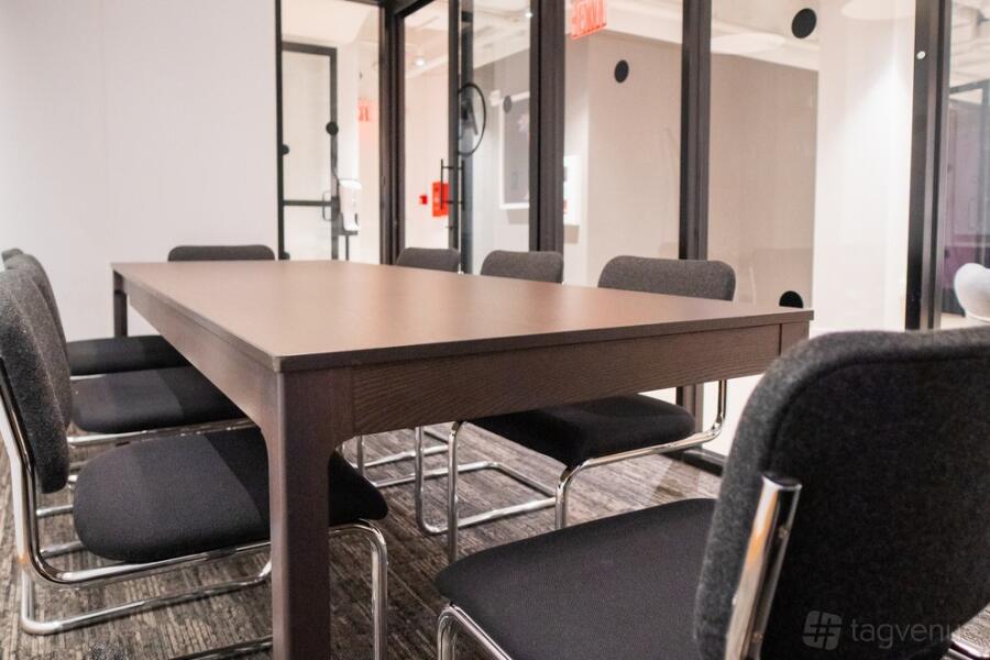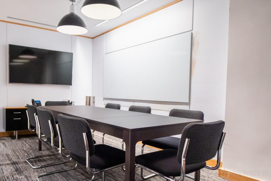 Perfect for quick huddles or one-on-ones, Conference Room 5B comfortably fits up to 5 people. This intimate space is packed with functionality, including a flatscreen TV, whiteboard, and wireless connectivity-great for brainstorming or focused collaboration.