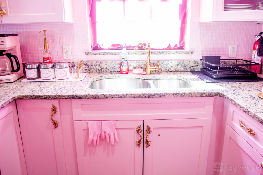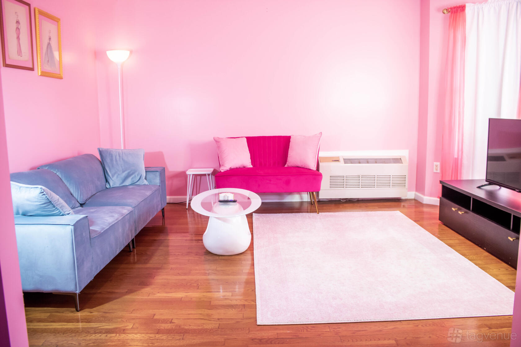 The Pink Speakeasy is a unique rental location that features an all-pink dollhouse meets vintage deco style all fitted in a three-bedroom, two-bathroom second story apartment located in West New York, New Jersey (20-30 mins from Times Square NYC). Even though the space has a particular setup, it is completely transformable to whatever your vision is.