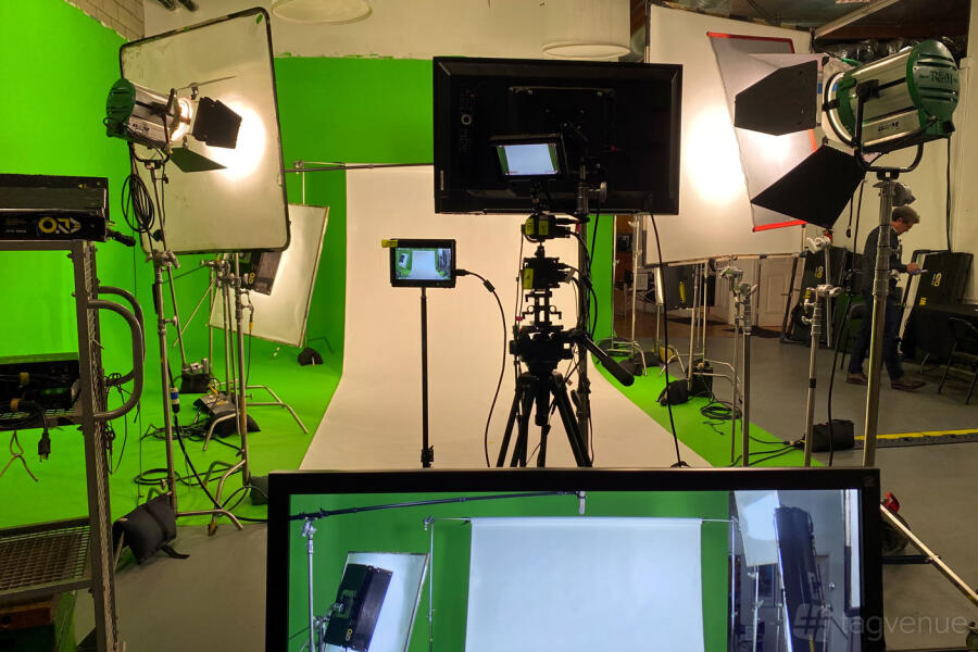 Unlike most green screen studios, our Green Screen Cyclorama Studio is pre-lit with daylight-balanced LEDs optimized for modern camera sensors. We use custom-made space lights equipped with adjustable 4-foot tubes, allowing each unit to operate with one to eight tubes.