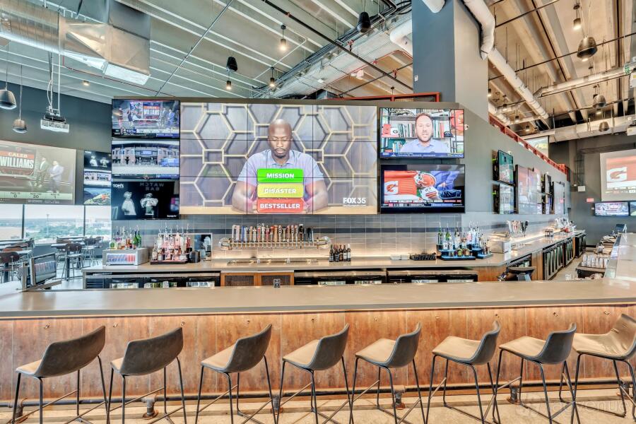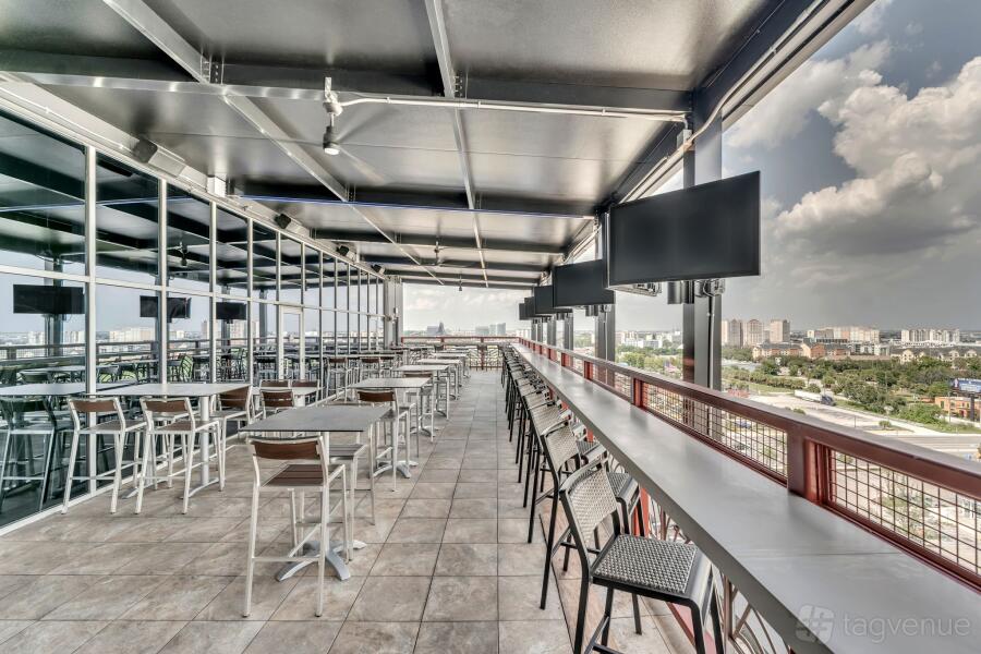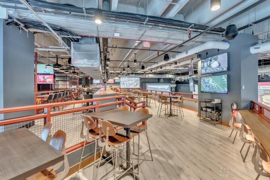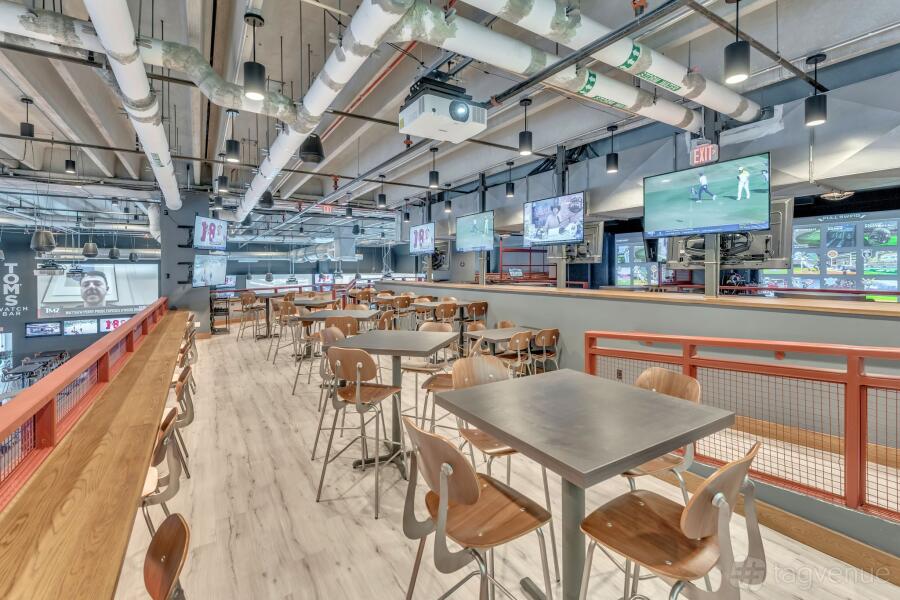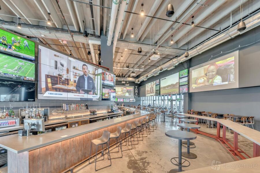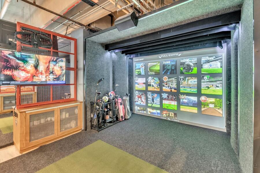 For interactive experiences, our venue features Topgolf Swing Suites, offering virtual golf and multi-sports games, perfect for team-building activities. Additionally, we are equipped with over 130 screens throughout the space, allowing you to project custom images and enhance the atmosphere.