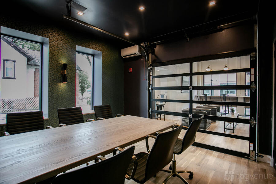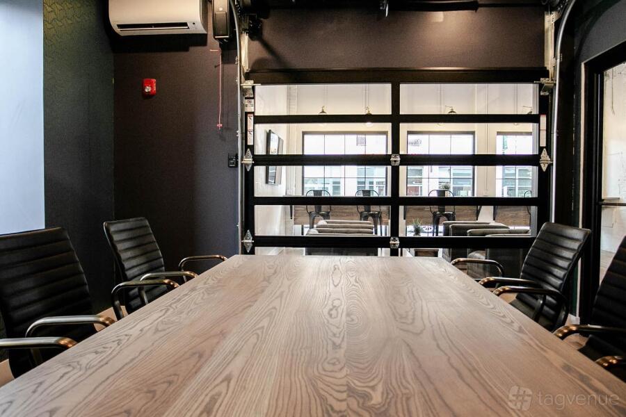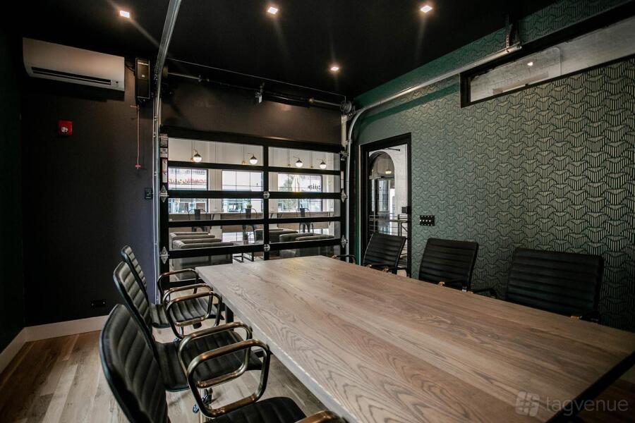 The Lower Level Area is ideal for larger collaborative company meetings. This space comfortably seats 8 around a table with room for 3 more guests on bar stools. It features its own kitchenette with complimentary coffee and cold brew on tap.