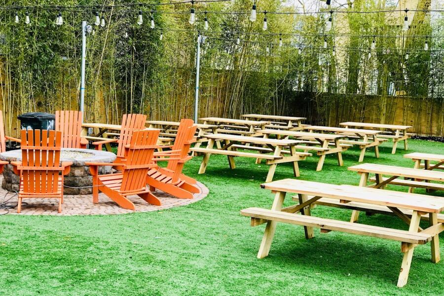 Tennessee Avenue Beer Hall offers a cozy and inviting atmosphere with warm decor, a well-stocked bar, and live entertainment on select nights. The space features vintage beer memorabilia and offers games like pinball for added fun.