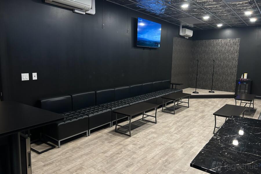 The main highlight of this venue is the expansive Large Suite, capable of accommodating up to 60 people comfortably. It features a stage and three impressive 75-inch screen TVs that deliver stunning visuals alongside an exceptional sound system equipped with four microphones. The user-friendly karaoke system boasts a vast library of over 38,000 songs in English, with an additional 18,000+ in Spanish, as well as extensive KPop and Bollywood collections for a truly global karaoke experience. For larger parties, the option to expand by incorporating an adjacent suite is available, providing additional space for catering or larger groups.