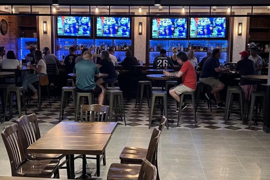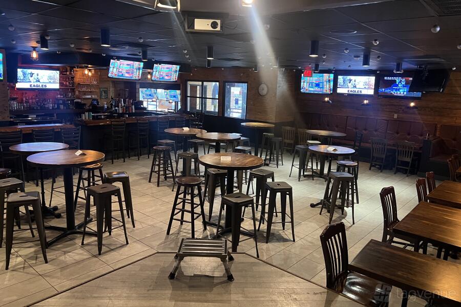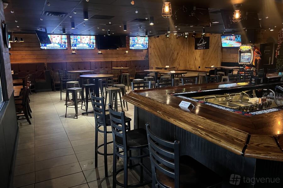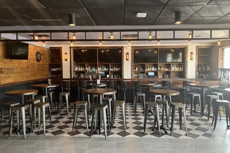 The flexible layout allows for easy customization with movable tables, and the stylish decor includes granite floors, a diamond-patterned floor near the bar, and handcrafted, torched wood-adorned walls. Enjoy the best wings in town from our delicious menu, complemented by in-house catering. With friendly staff and professional service, make your event memorable at HomeBase's elevated space.