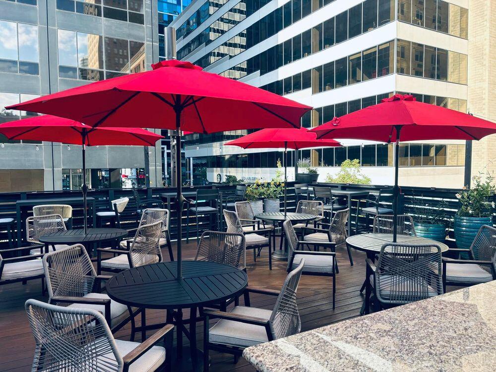 The Rooftop can host up to 60 guests. There are chairs, tables and umbrellas. This space is fit for parties, corporate receptions, and celebrations.