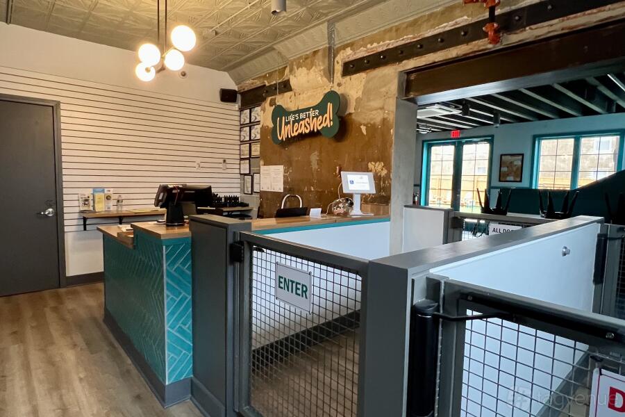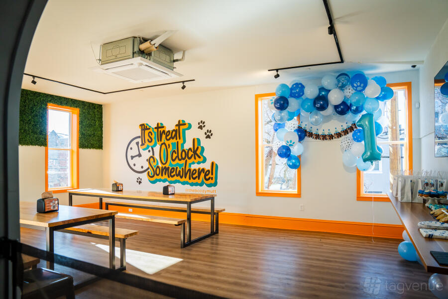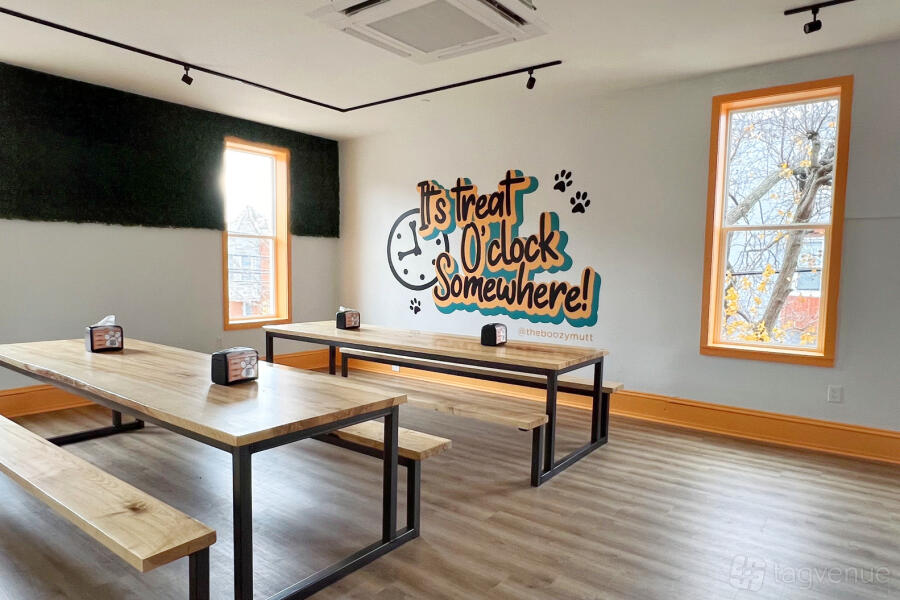 The Boozy Mutt offers a 6,500 sq. ft. indoor-outdoor bar, grill, dog park, & private event space. Enjoy our safe, clean, and pawsitively fun facility, no matter the weather, with a house made cocktail, local craft beer, and made-to-order food favorites! Gluten free & vegan options available. Also there is parking nearby for your convenience.