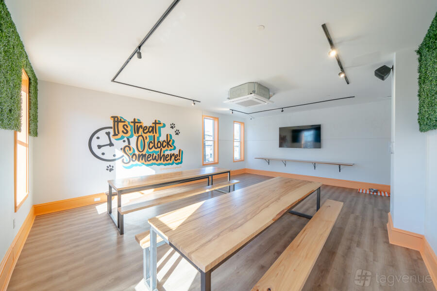 Our Whole Doggone Place can host up to 300 people at full capacity. The number of dogs that can be comfortably accommodated depends on their size and the total guest count. The recommended limit is up to 50 dogs to maintain an enjoyable environment for everyone.