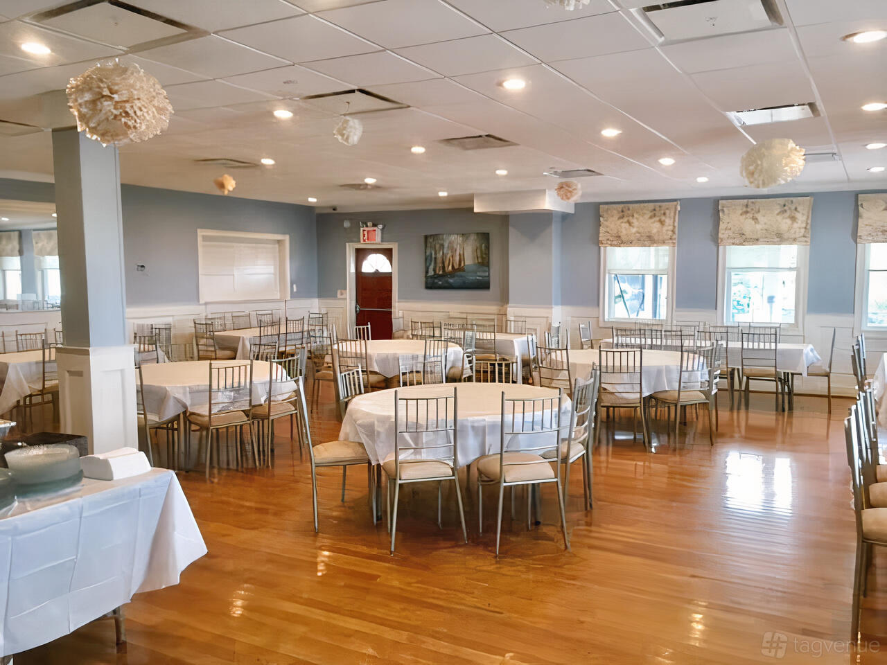 Outside, you'll find tennis, basketball, and pickleball courts, plus a playground and a spacious outdoor deck. The old-style porch, lined with cozy chairs, is perfect for relaxing and soaking in the waterfront views. With its unique vibe and inviting vibe, this spot is ideal for film shoots, photo sessions, and creative projects seeking a timeless backdrop.
