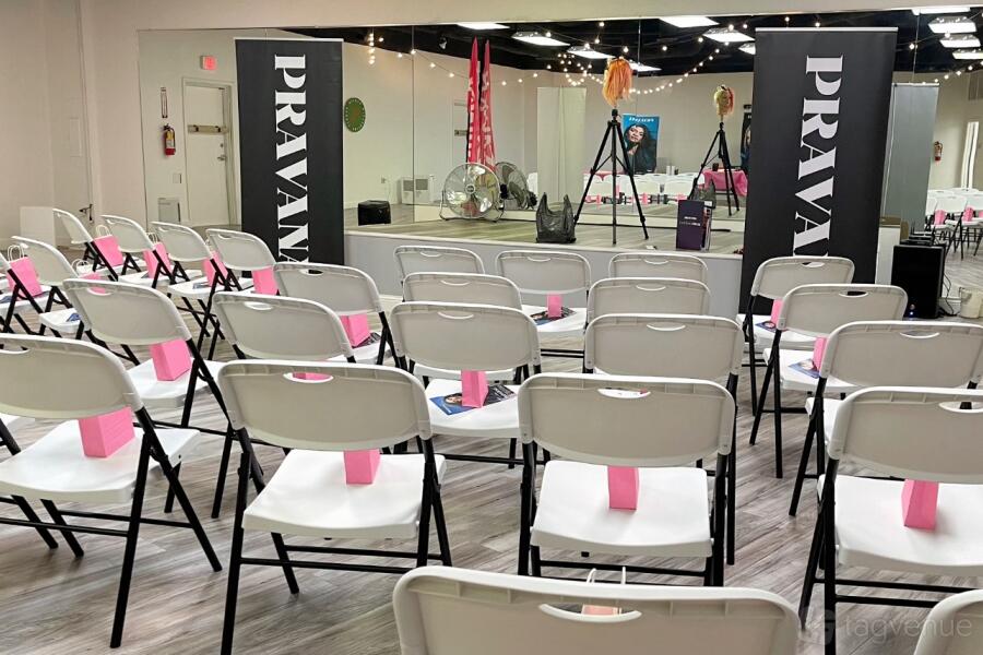 Our Wanda's Studio venue, located at 9400 Lakeview Pkwy, offers a setting for events, meetings, and photography sessions. The studio features a minimalist design with bright, open spaces and high ceilings, creating an atmosphere for projects or social events.