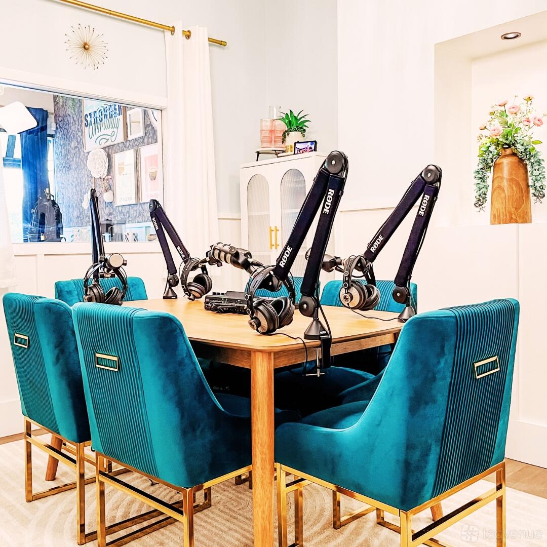 Our Media Studio combines professional equipment with a chic, feminine design, making it the perfect space for podcasting, video workshops, and social media content creation.