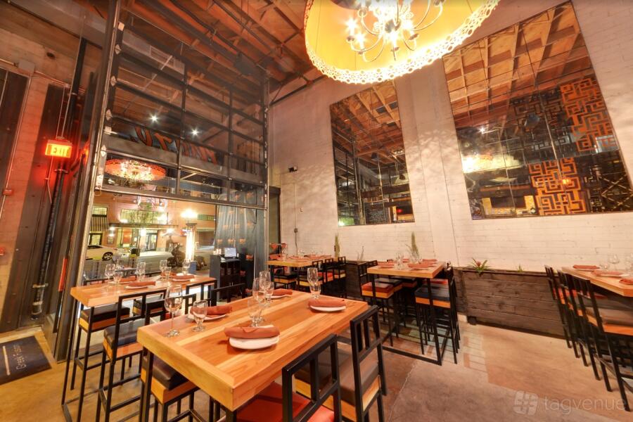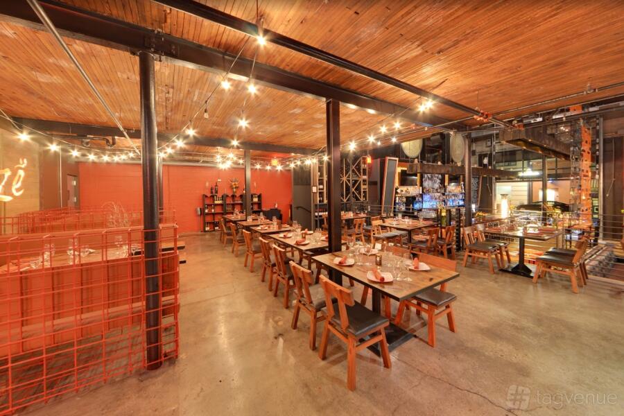 The warm glow of string lights creates an inviting atmosphere, while a state-of-the-art sound system ensures that your event is accompanied by the perfect soundtrack. What truly sets Elevated Space apart is its view overlooking the bustling restaurant below, allowing you to enjoy the vibrant energy while still savoring the privacy of your own space.
