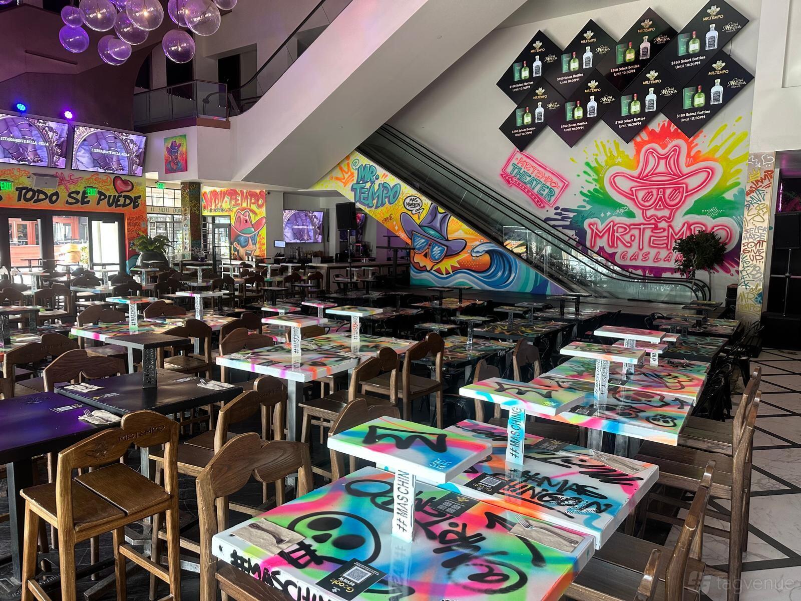This venue specializes in Mexican cuisine, and it's ideal for hosting celebrations, parties, and dinners. The interior is colorfully decorated with graffiti and neon lights.