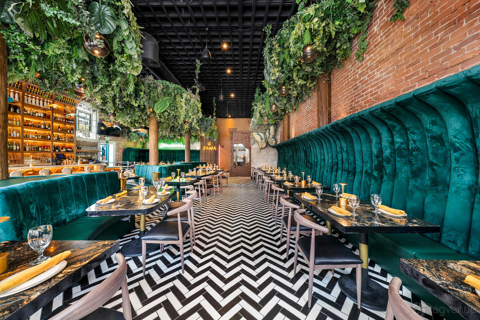 The butterfly area is a semi-private area within our main dining room. Fall in love with our unique decoration, which makes our venue extra special. Think of a big butterfly on the wall, greenery on the ceilings that resemble the Amazon Forest, and deep green comfortable seating to add a bit more uniqueness and beauty.