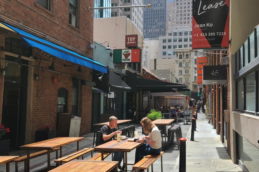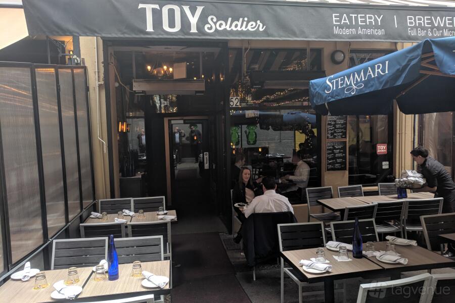 Whether you're looking to have a quick lunch, conduct a business meeting, host a banquet or go on a first date, Toy Soldier is sure to deliver. We offer a casual & lively atmosphere sprawled across our main dining room, full bar, romantic upstairs lounge & outdoor dining area. Toy Soldier is located within the famous Belden Alley in San Francisco's Financial District. Both metered and hourly parking are available in the district, and we are only a few blocks away from several Muni lines & BART.