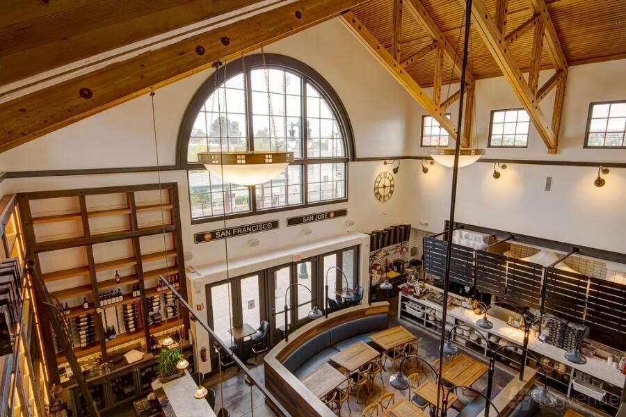 We selected this particular piece because of the movement it conveys and the color combination is a perfect expression of our concept. After all, we are located within a historical train station directly at the San Mateo Caltrain stop!