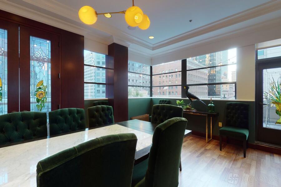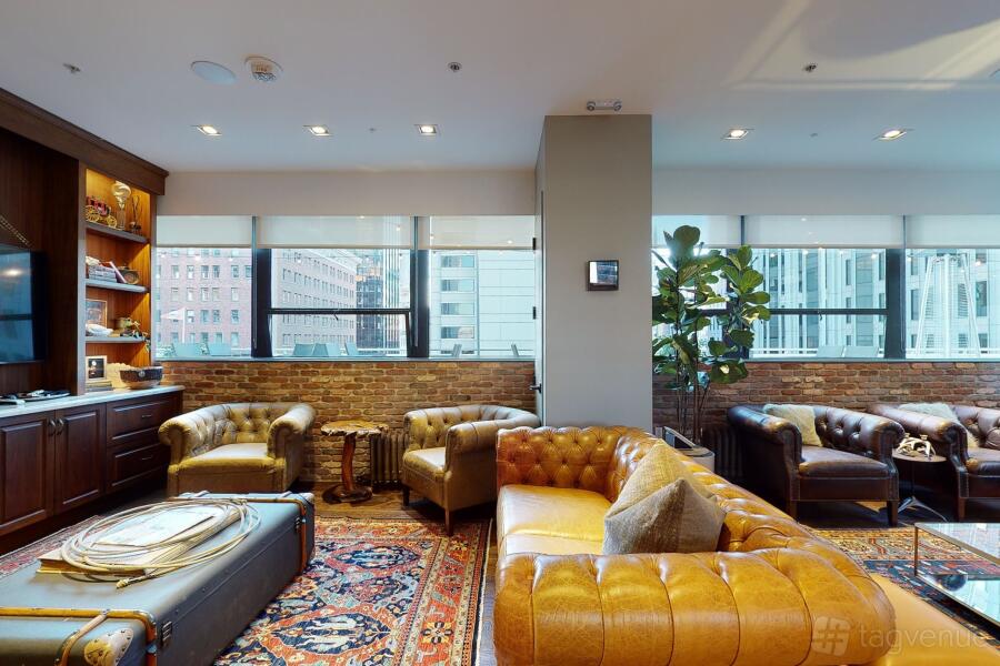 This space a unique and versatile penthouse nestled high on a historic gem in the financial district. The loft-like layout and appointed assembly make it perfect for a corporate gathering, conference, private event, birthday, wedding, you name it! Enjoy soaring city views through wrap-around windows and a 2,000 square-foot roof deck. Take advantage of safely gathering in the outdoor space.