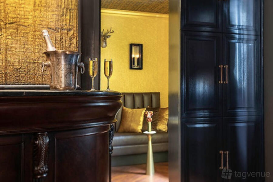 A few words to the host gets you escorted downstairs through a secret bookshelf door. The 700 sqft Speakeasy features a cool "underground" atmosphere filled with games, Sonos sound system, and a private bar area with direct access to the Outdoor Garden Terrace.