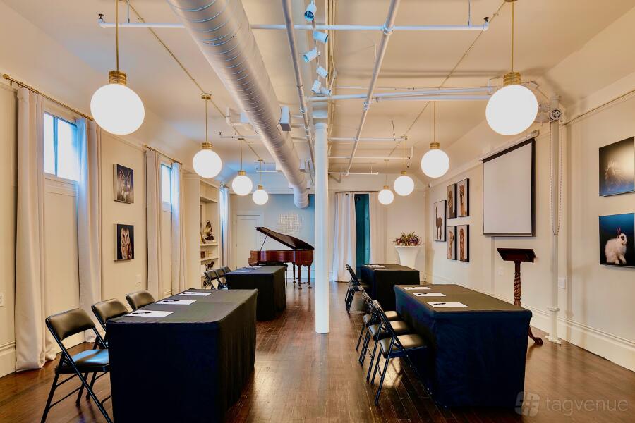 A: There is no loading dock or designated loading zone, however, we do have a side gate on Market Street that goes to the lower level (Speakeasy or Outdoor Terrace). This can often be the easiest way to load in, depending on which space you have reserved. Street parking is available or you may temporarily double park on Market Street for quick drop-offs. Please coordinate specific arrival times with venue management, and be advised that all set-up time must be part of the hourly rentals. Your event contact can go over these requirements to ensure a smooth experience.