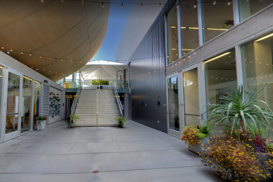Eva Gunther Plaza is an outdoor space that is very spacious- with a capacity of up to 100 people. It's also filled with natural light and plants, creating a charming atmosphere.