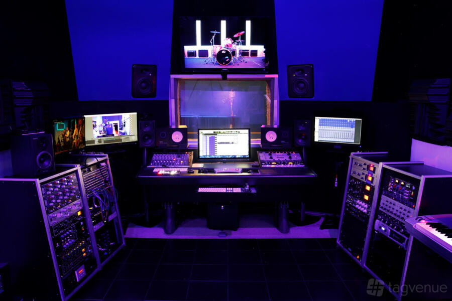 We can record a simple overdub over a track, or a complex full-band multi-room tracking session, with flexible isolation options, discrete headphone mixes, and as many as 32 inputs.