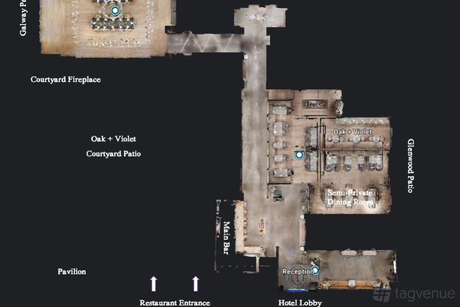 The Galway Room, our main event space, welcomes 150-200 guests when combined with the courtyard. Seated dinner and cocktail party setups are available upon request, and Oak + Violet would be delighted to cater delicious food and cocktails to your event.