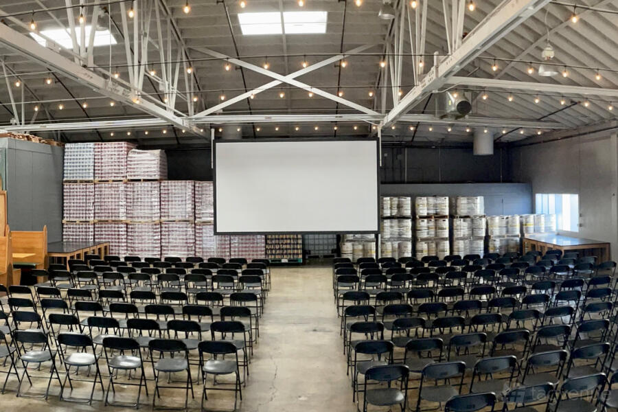 The Main Hall offers comfortable seating for 200+ guests, allowing ample space for decorations, dancing, and socializing. With its impressive 30-foot vaulted ceilings and 10,000 square feet of space, stepping through the front doors evokes a sense of wonder. The focal point of the Main Hall is a versatile stage equipped with audiovisual capabilities, ideal for concerts, ceremonies, presentations, and more. In the Breezeway, an inviting outdoor area, guests can enjoy additional seating, including tables, chairs, and cozy couches, surrounded by twinkling cafe lights and a beautiful repurposed wood backdrop. For events requiring a custom floor plan, our dedicated team works remotely with hosts, utilizing digital tools to create the perfect layout, optimizing existing furniture placement, and ensuring a seamless planning experience.