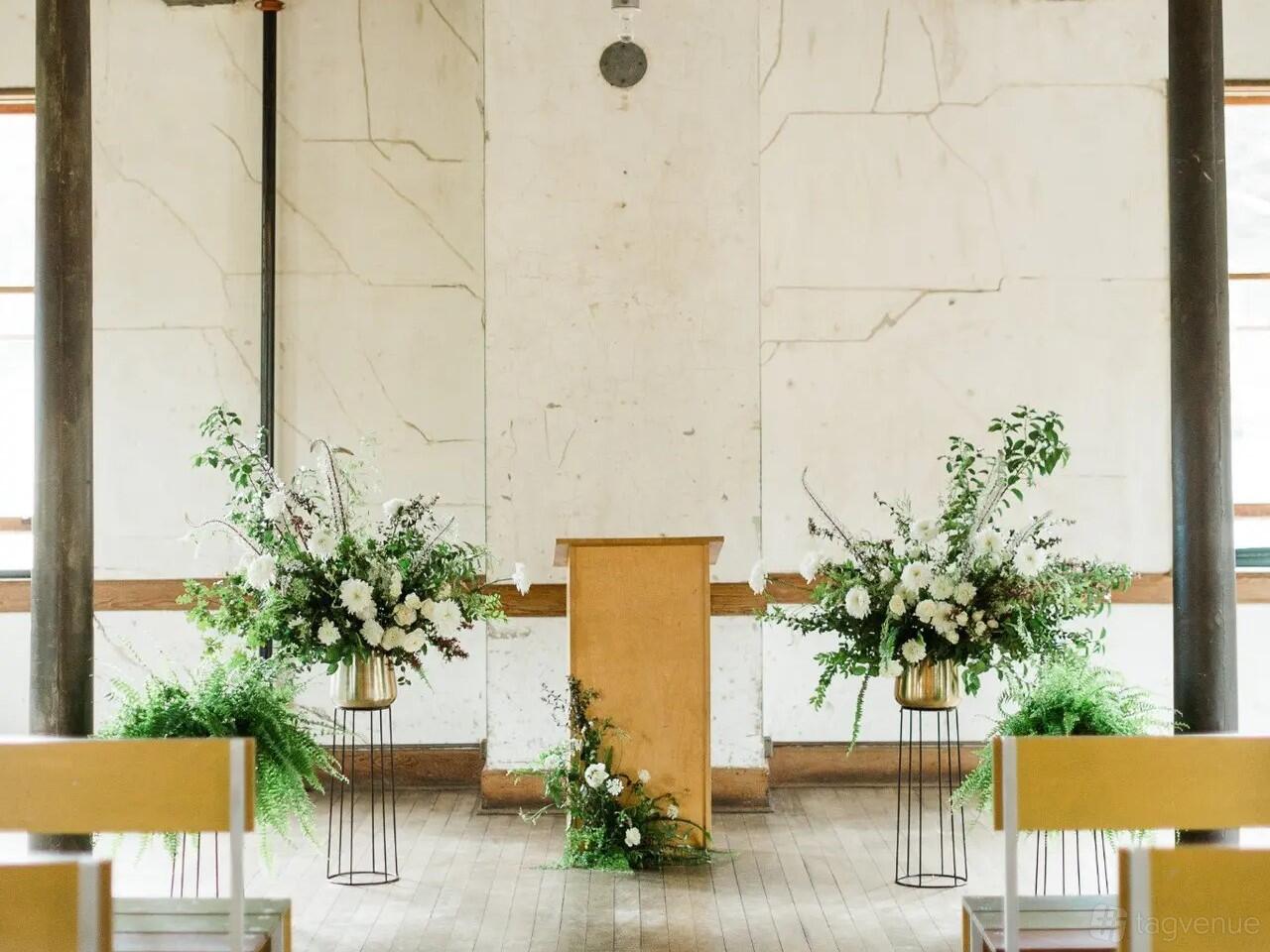 The Eastwing is a versatile space that serves as both an indoor ceremony area and a reception space for dancing. It features bench seating for up to 120 guests and a grand piano, adding an element of elegance.