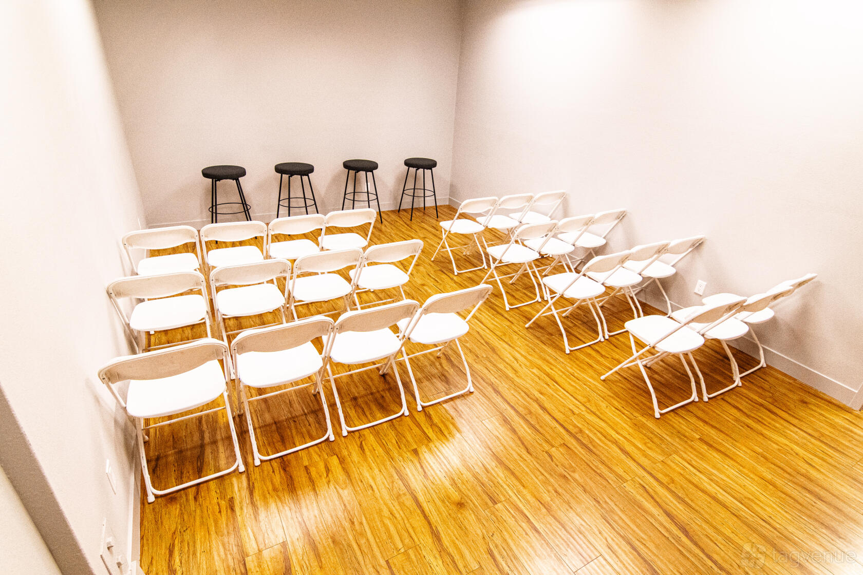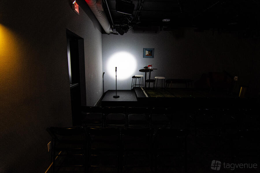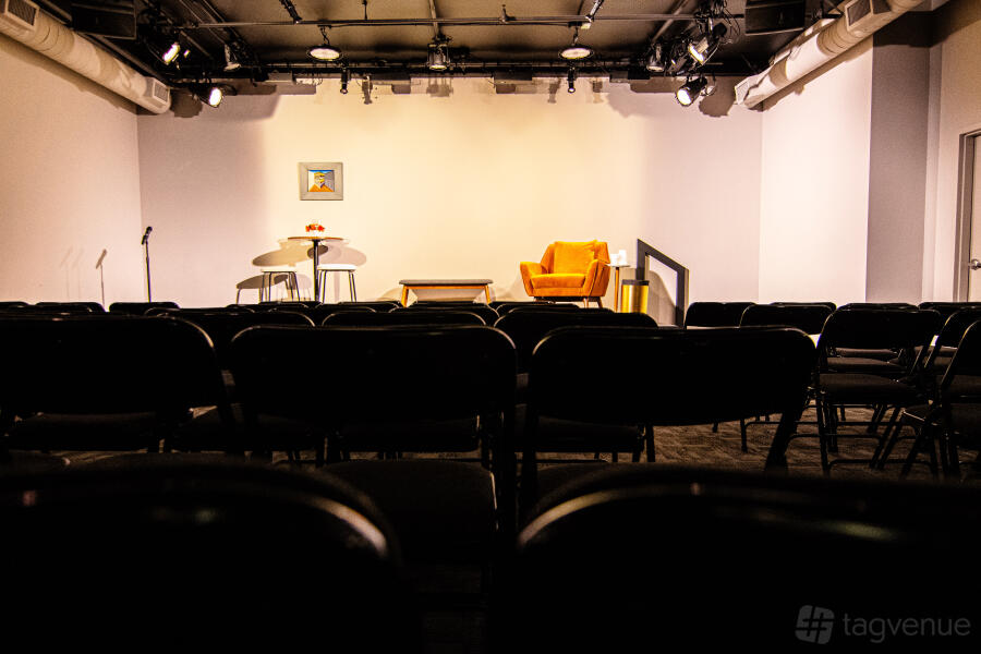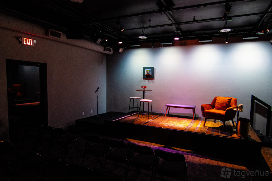 Our venue is a modern theater space in Santa Monica. We offer three distinct areas: a multipurpose room, a main performance space with stage and professional-grade tech, and the full venue. The entire venue includes the lobby/art gallery, green room with kitchen, and accessible restrooms.