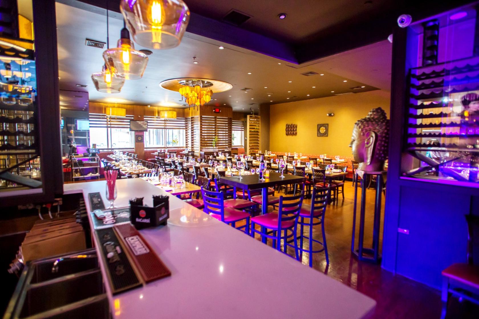This 1,800 sq. ft. dining area offers a very warm setting to take meals in or for the purpose of an event. With wood furniture and soft lighting, this dining area seats 100 and is elegant and homey. Live music is allowed in the space, which will add the perfect ambiance needed to celebrate.