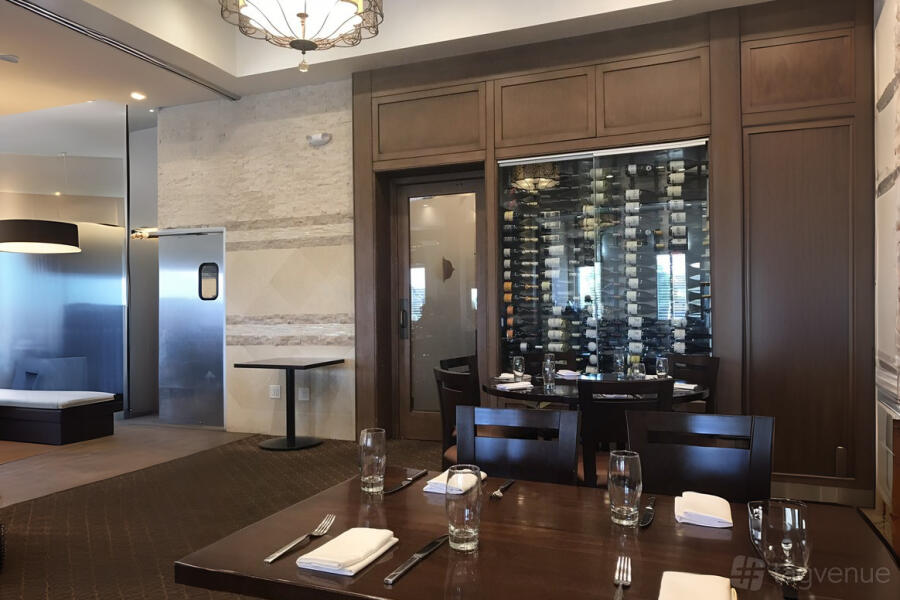 This is a private dining room with a round table in the centre that can accommodate 12 guests. The showcased wines are hand-picked and at guests' disposal.