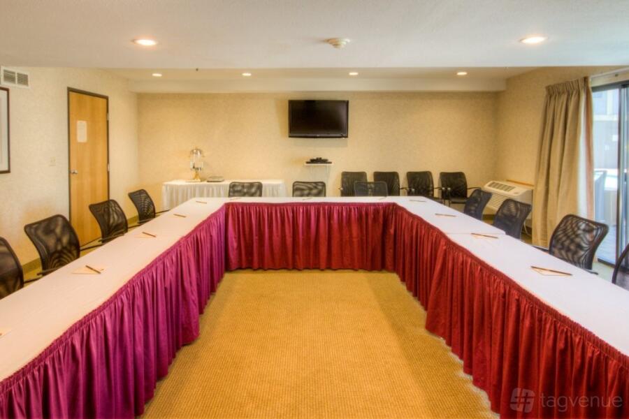 The boardroom at Maple Tree Inn, located in the heart of Silicon Valley, is equipped with office supplies and audiovisual equipment, providing a professional environment for business events and meetings.