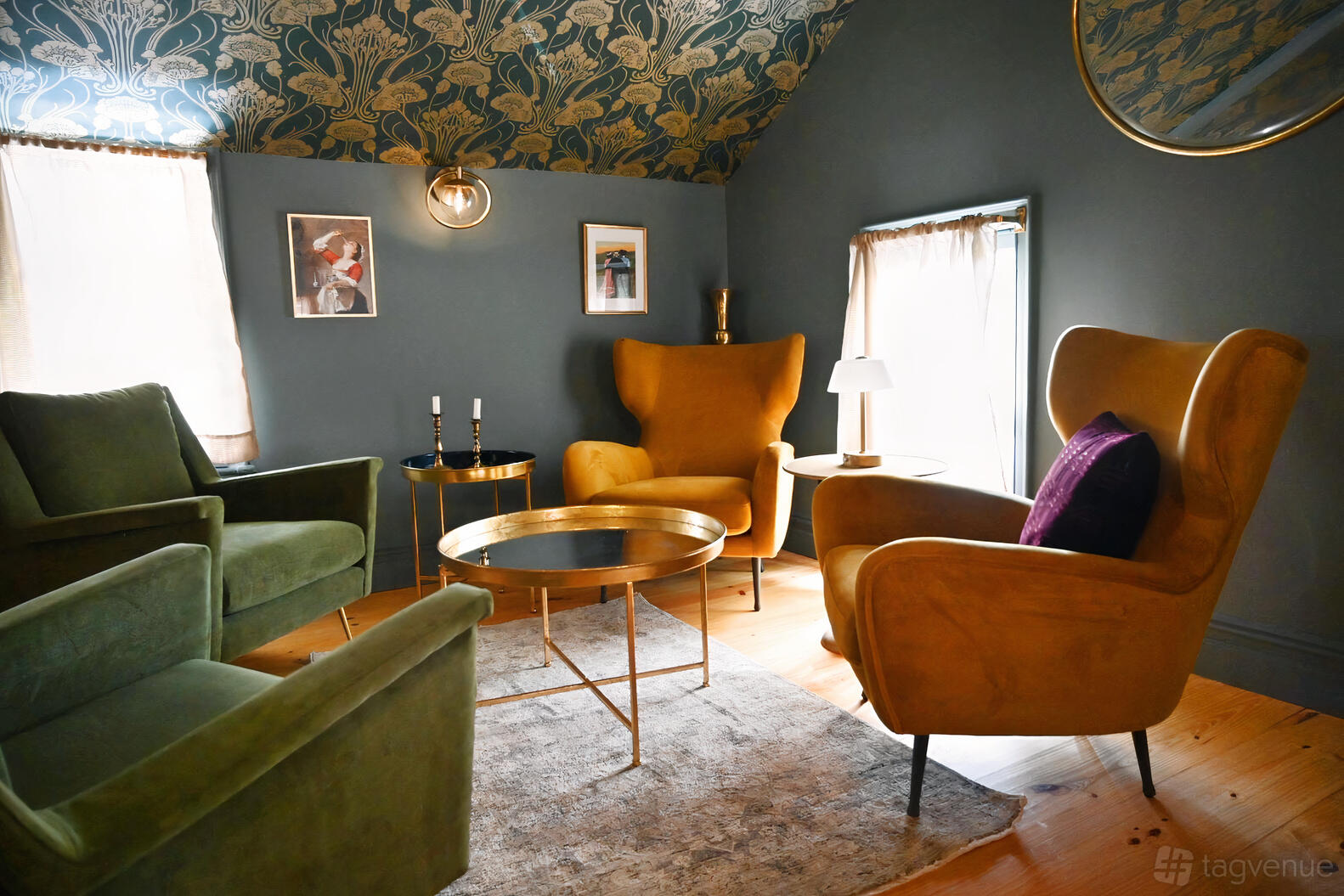 The Lyle Lounge at Spring House is an intimate and elegant space perfect for private meetings and upscale social gatherings. Designed with timeless elegance, it features plush seating, an elegant centerpiece, and a refined ambiance that blends comfort with style.