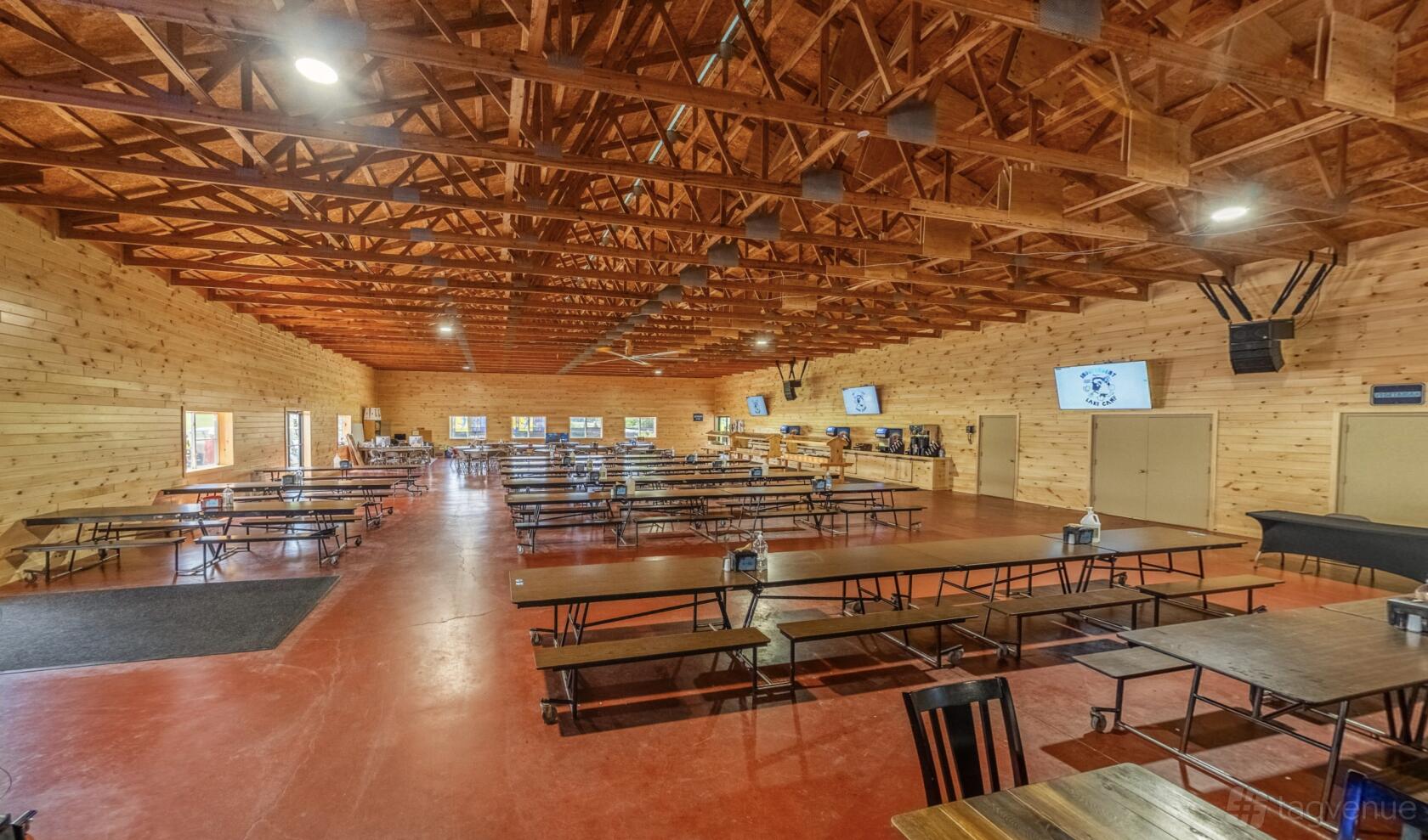 Equipped with a full audiovisual system, the Dining Hall at Independent Lake transforms into a vibrant dining and entertainment hub, making it the ideal venue for a variety of events. Whether you're planning a casual gathering, hosting a mixer, or organizing a formal reception, this versatile space provides everything you need to create memorable experiences. With its inviting atmosphere, state-of-the-art equipment, and ample room for guests, the Dining Hall is perfect for serving meals, enjoying live entertainment, or sharing drinks with friends and colleagues.