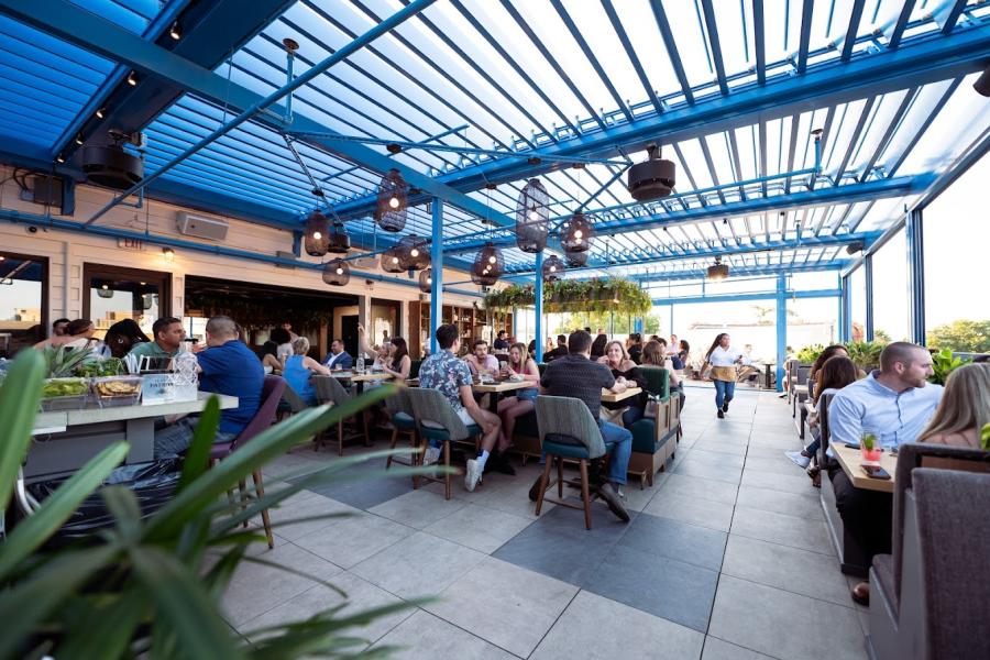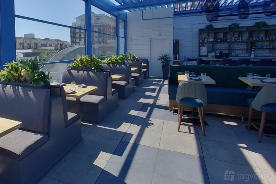 Buena Vida Gastrolounge on Wilson Boulevard in Arlington is a Mexican restaurant with modern interiors, natural light, and tropical surroundings. It has wall windows and a retractable roof on the rooftop for all-weather use.