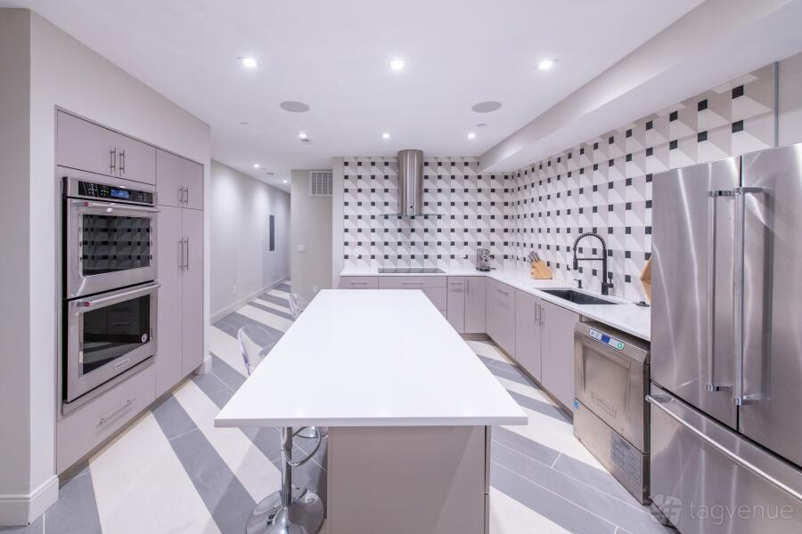 An on-site catering kitchen adds convenience for meal preparation and service, ensuring that your culinary needs are effortlessly met. The seamless blend of style and practicality makes this space an ideal choice for creating memorable experiences.