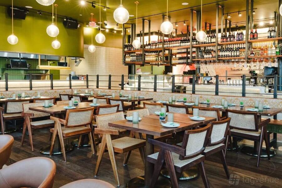Situated next to the bar area, this semi-private space is ideal for small gatherings, family celebrations, intimate events, and more, offering a cozy yet functional setting for various occasions.