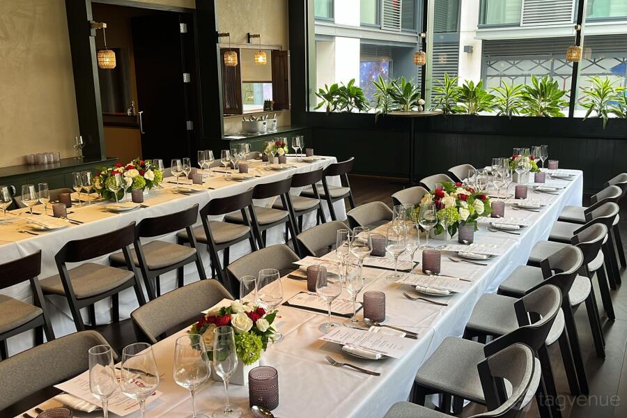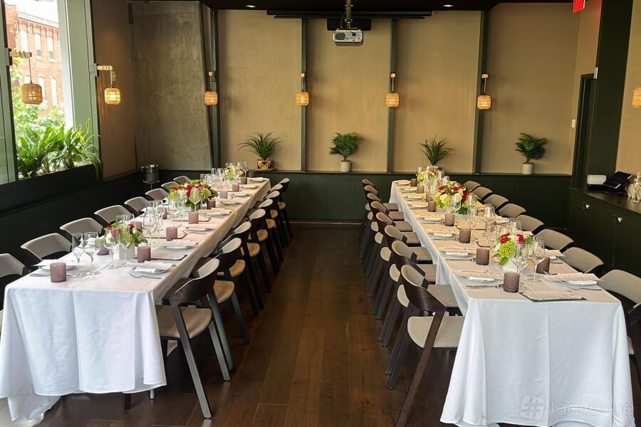Our venue offers unique spaces perfect for every kind of celebration! The 700-square-foot Green Room is a fantastic choice for private dinners or social gatherings, while the spacious 900-square-foot upper dining room works beautifully for larger receptions or corporate events. Planning something more intimate? The cozy 350-square-foot Red Room is just the spot for a private dinner or an exclusive meeting. The main dining area, complete with a sleek, well-stocked bar, brings a lively touch, ideal for cocktails and casual meet-ups with friends.